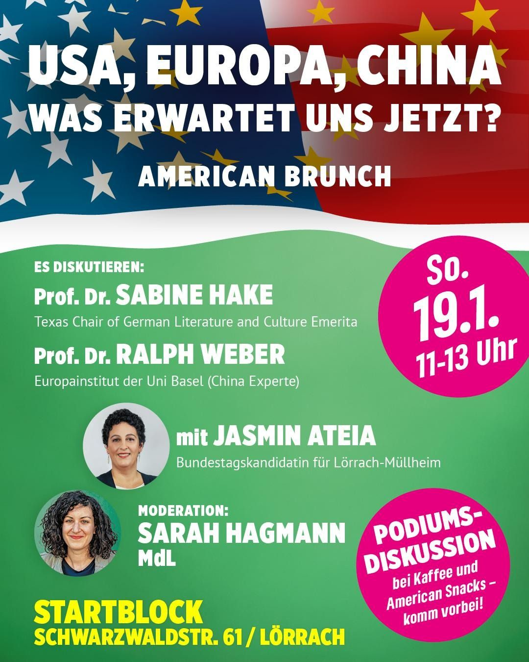 Die Veranstaltung wird von Sarah Hagmann, MdL, moderiert. Beim American Brunch erwarten Sie nicht nur spannende Diskussionen, sondern auch Raum für. Ihre Fragen und Gedanken - seien Sie dabei!