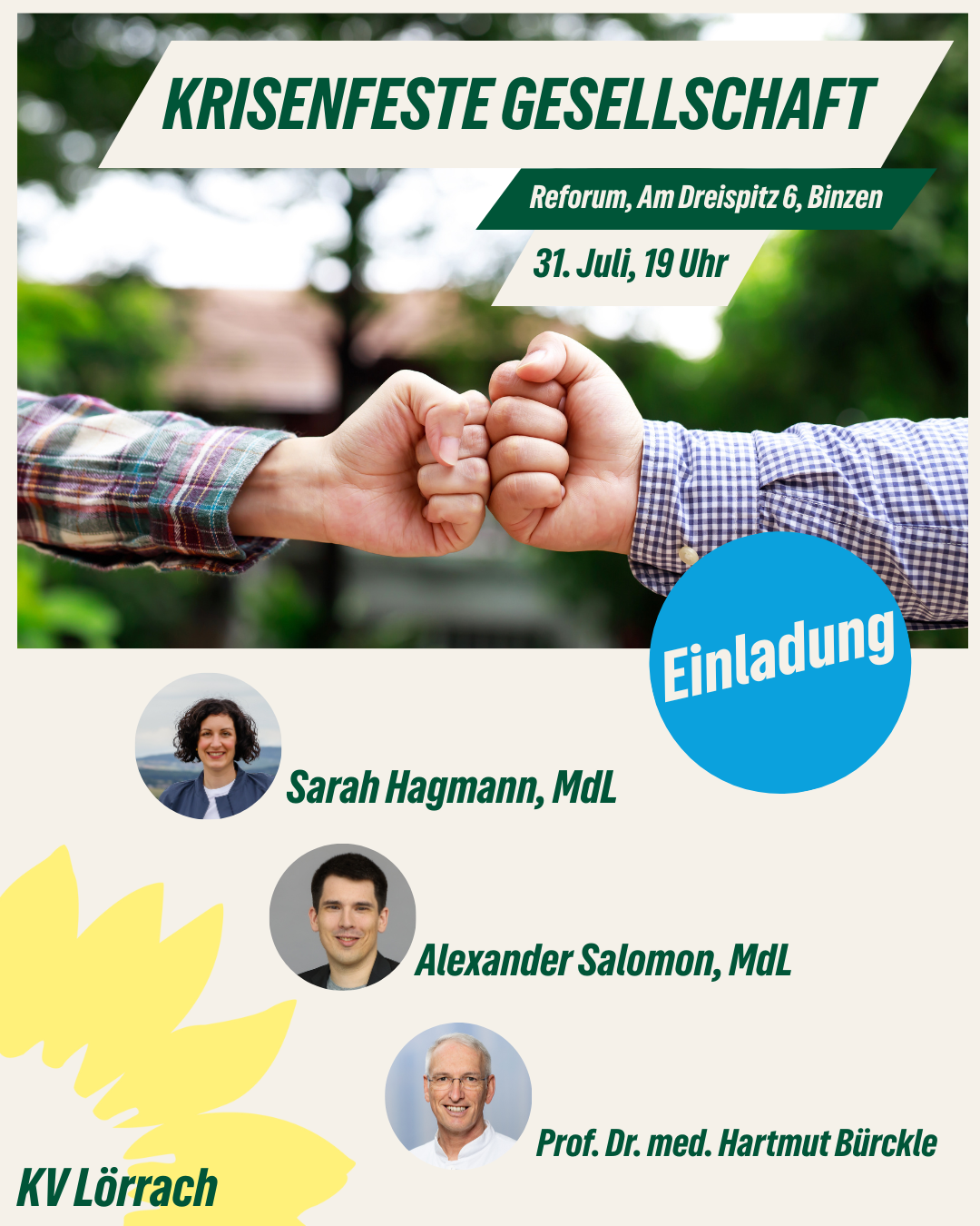 Der Kreisverband Lörrach von Bündnis 90/Die Grünen möchte mit Ihnen ins Gespräch kommen – bei seinerVeranstaltung „Krisenfeste Gesellschaft“