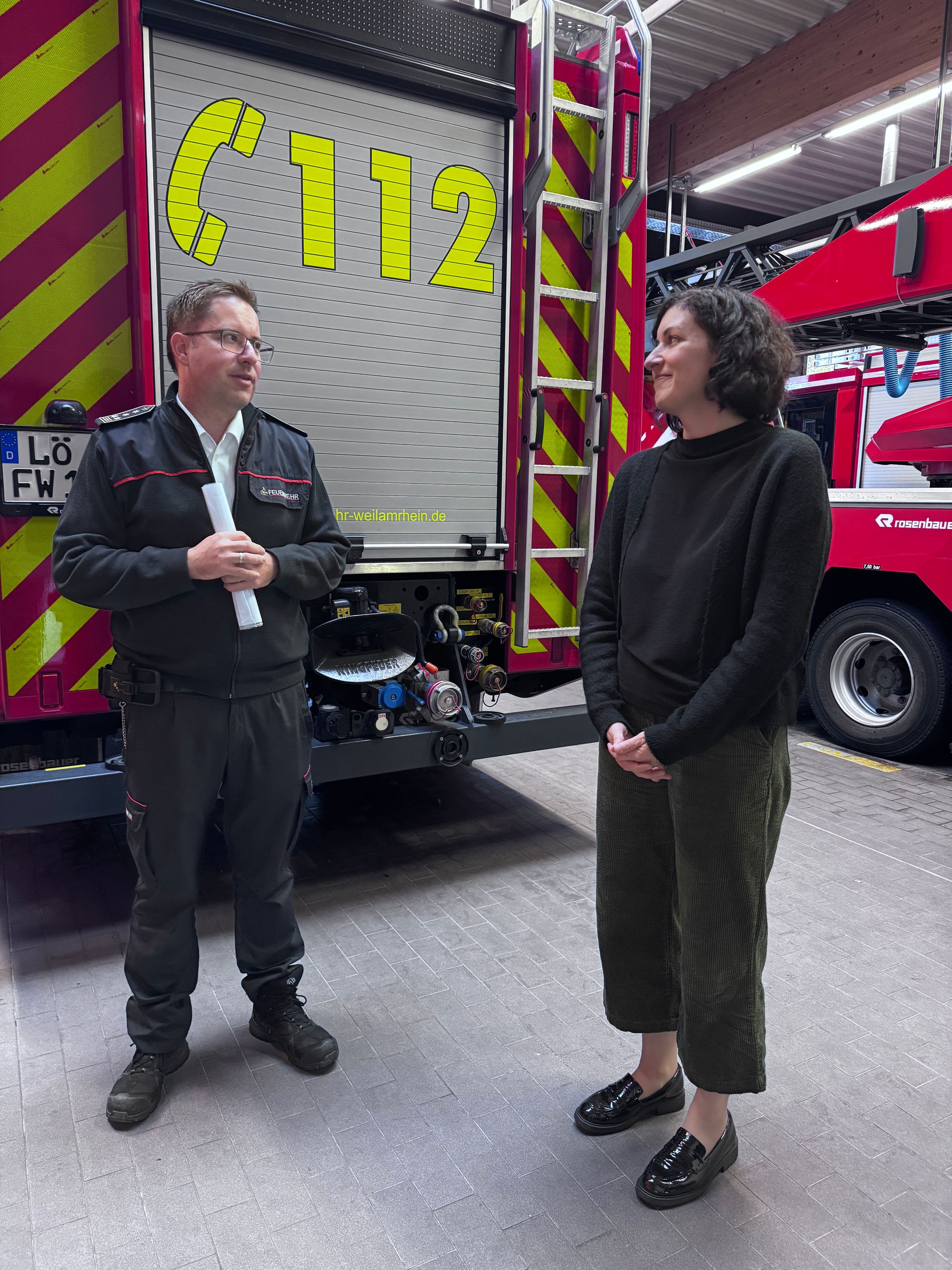 Die Grünen-Landtagsabgeordnete Sarah Hagmann besuchte kürzlich die Feuerwache in Weil am Rhein. Im Gespräch mit dem Feuerwehrkommandanten Frank Sommerhalter, dem stellvertretenden Kommandanten Alexander Ebler und der Oberbürgermeisterin Diana Stöcker erörterte sie, wie die Feuerwehr in größeren Städten wie Weil am Rhein zwischen Ehrenamt und Hauptamt gut organisiert werden kann.